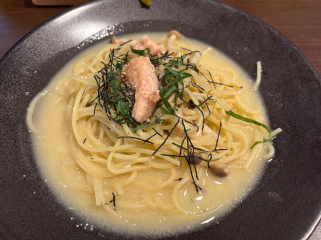 「焼きたらことしめじのおだしクリームソース」を鎌倉パスタで食べました☆大好きなたらこと大葉がとってもおいしかった(*´▽`*)